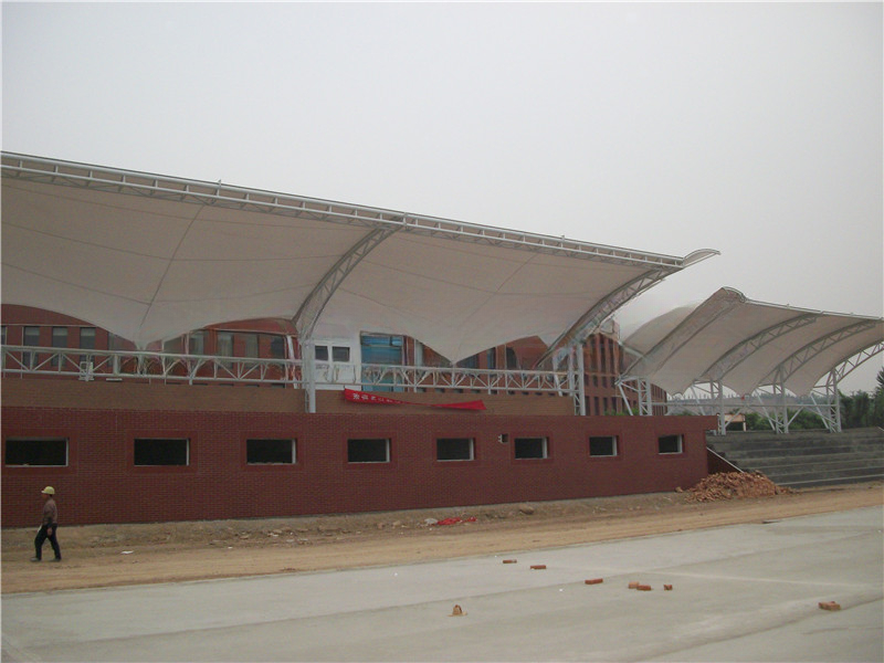 膜结构雨棚常用的材料有偏氟乙烯、聚四氟乙烯和聚氯乙烯,而横梁一般采用高强度钢…