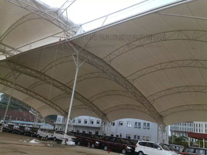 1.产品质量:选择高质量的膜结构停车棚可以保证使用安全和使用寿命。需要了解厂家的生产流程、质量控制体系等方面来评估其产品质量。