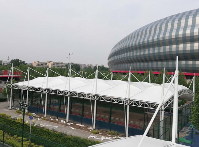 在保养方面,球场膜结构需要定期进行检查和维护。如果发现膜材料出现损坏或老化,可以进行及时地修复或更换,确保结构的正常使用。