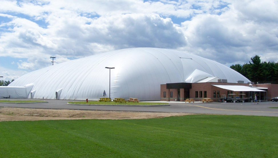气膜体育馆可以实现大跨度的设计,这主要得益于其独特的充气结构。这种结构自重非常轻,可以轻松实现过百米的大跨度。