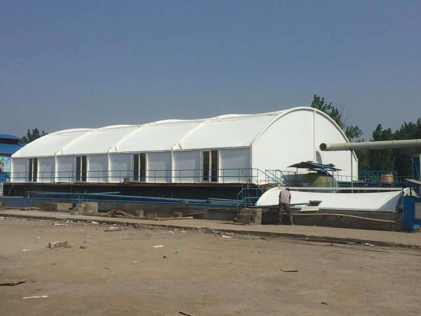 3、膜结构厂房在机械制造、制药、仓储物流等领域的应用越来越广泛,其具有的优势有三个方面:建设成本低、建造速度快、以及环保节能。首先,膜结构厂房不需要使用高成本的钢材,而是采用新颖的柔性材料,所以建设成本相对较低;其次,膜结构厂房由于施工方式简单,而且可以减少几乎一半的时间,因此,它的建造速度远远快于传统的钢筋水泥建筑;最后,膜结构厂房还具有环保节能的特点,它比传统的建筑材料更加环保,而且能更好地进行节能、节水和减少污染,对保护周围环境和自然资源有着很好的效果。