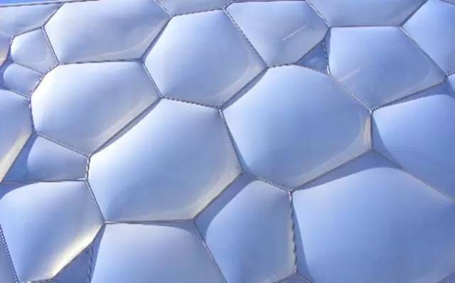 充气膜结构可以认为是一种薄型、柔性的建筑结构形式,它通过使用不同的材料、材质、厚度等来适应各种不同类型的建筑需求。一般而言,充气膜结构使用的膜为PVC和ETFE膜材,水立方充气膜结构使用的是ETFE膜村,这种新型的膜材料具有较好的透明度和轻盈性,并且抗污染、耐用性强。最早应用于鸟巢体育场的建造中,如今被广泛应用于建造不同类型的充气膜结构。
