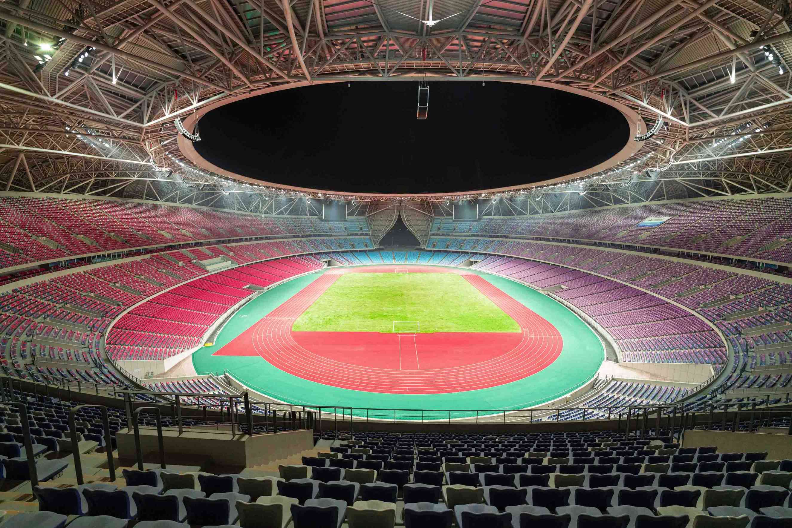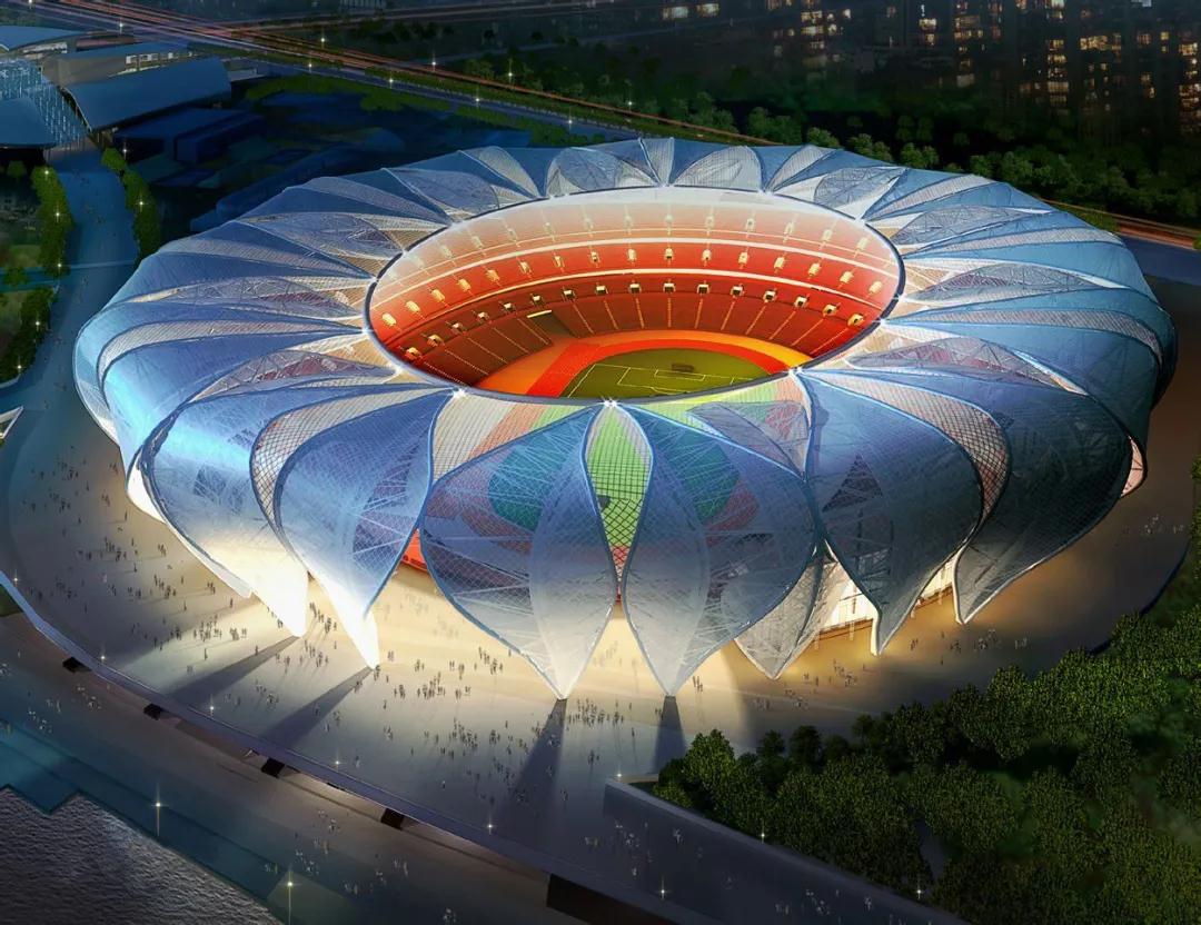 杭州奥体中心带来的视觉盛宴。除了外形和内部空间的设计,它的灯光设计也是非常出色的,白天与夜晚呈现出截然不同的美感。其中融入了灯光互动、水幕灯光演艺等形式,更为建筑增添了魅力。