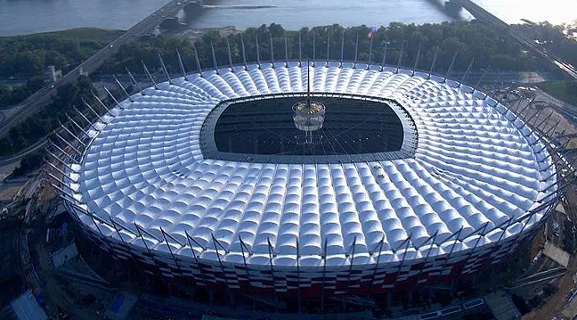 华沙国家体育馆是一座膜结构建筑,建设于2011年,位于波兰首都华沙,成为当时欧洲最大的室内运动场馆之一。该体育馆采用了膜材覆盖的轻钢结构,中央的屋顶呈拱形,可容纳7万多名观众。下面我们介绍这个膜结构体育馆的设计特色与可持续发展:
