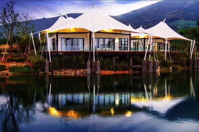 此外,苏州膜结构建筑中也融入了传统中国建筑的特色,如借景、水景以及对称等设计手法,使整座建筑更加协调和谐。