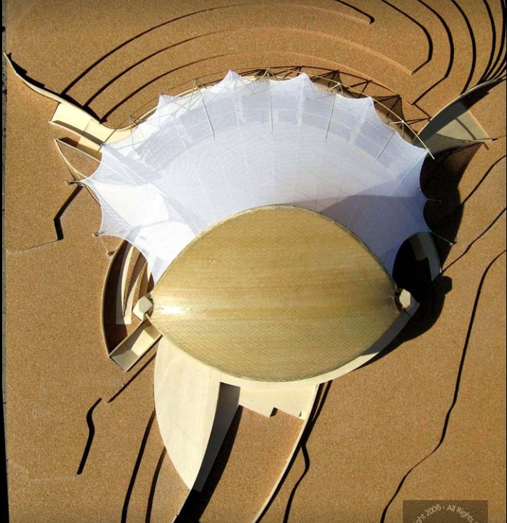 美国太阳谷音乐馆的建筑结构采用了轻质的PTFE膜材料和钢结构,既满足了建筑的美学需求,又确保了建筑的强度和稳定性。膜材料通过特殊的张力系统和预应力调整,实现了自支撑的立面,避免了繁琐的支撑系统,同时也减轻了整个建筑的重量。此外,太阳谷音乐馆的简约设计和流线型,更是为观众带来了不一样的视觉冲击,让人忍不住想要亲身体验。