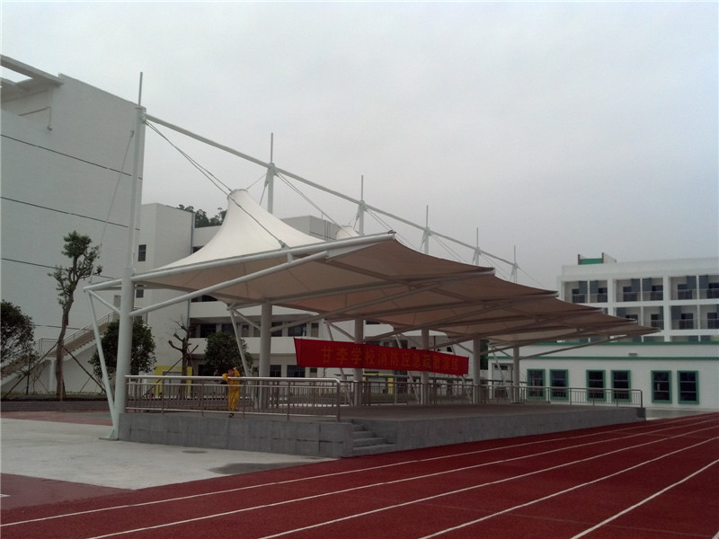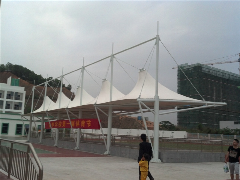 项目名称:深圳市龙岗区甘坑及上李朗社区新建九年一贯制学校看台膜结构工程工程地点:深圳市布吉甘李建设单位:广东省建筑工程机械施工有限公司-龙岗区甘坑及上李朗社区新建九年一贯制学校工程项目经理部膜材料:PVDF膜材料颜色:白色