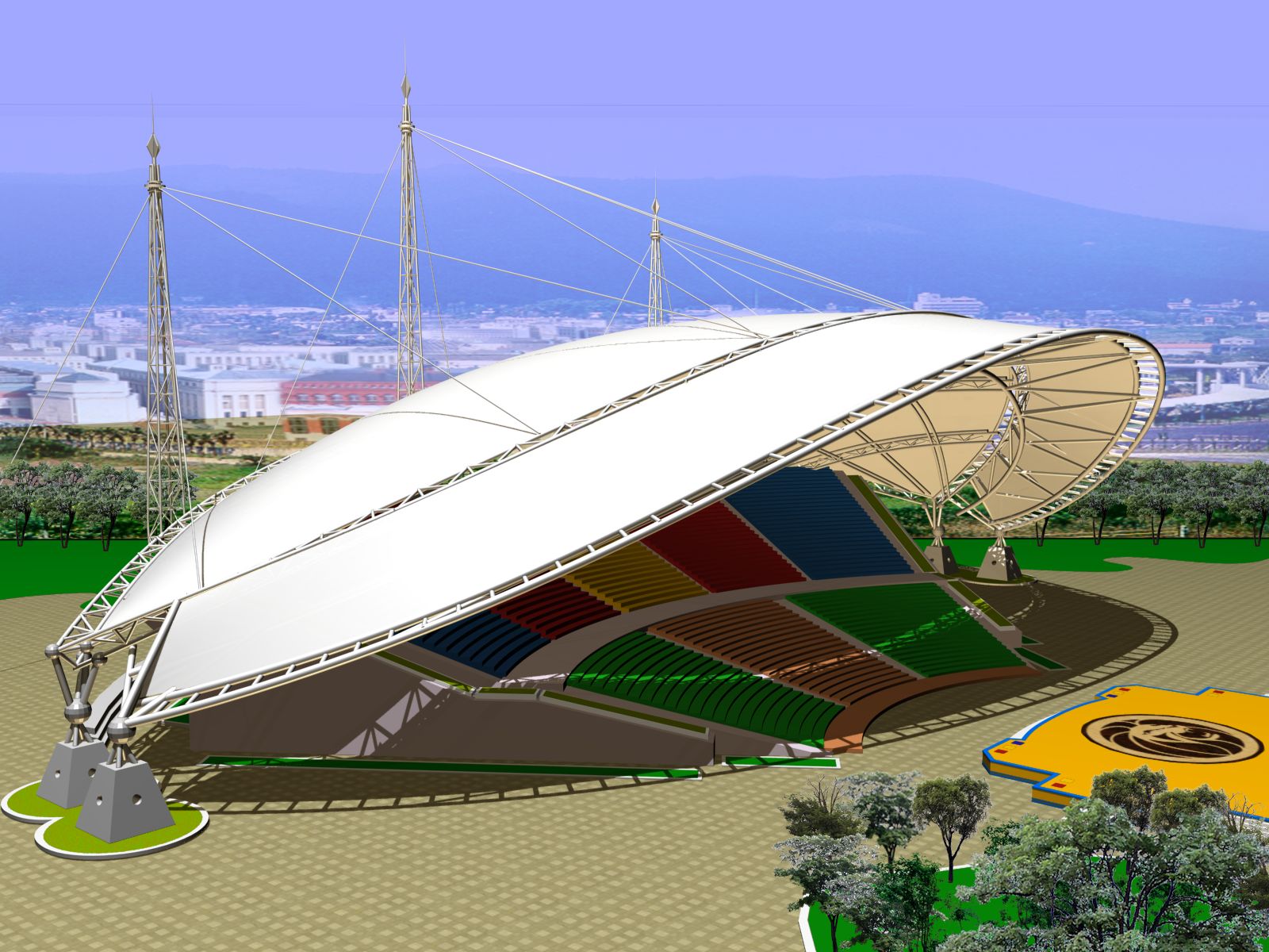 此外,膜结构看台车棚还具有以下几个特点: