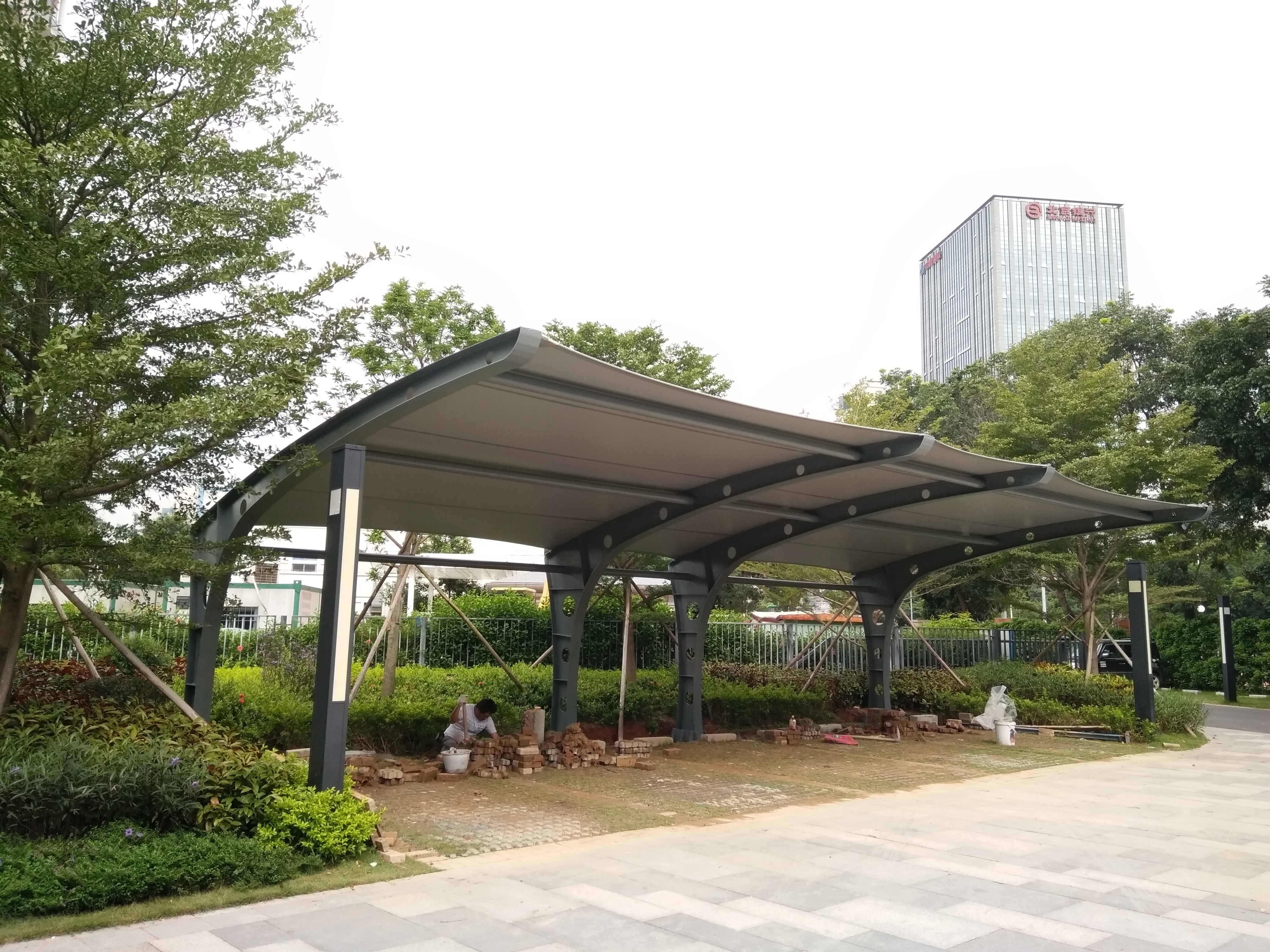 停车场膜结构停车棚是一种新型的停车设施,由于其美观、实用、耐久等特点,越来越受到人们的欢迎。本文将介绍停车场膜结构停车棚的施工过程,以帮助人们更好地了解这种停车设施的建造过程。
