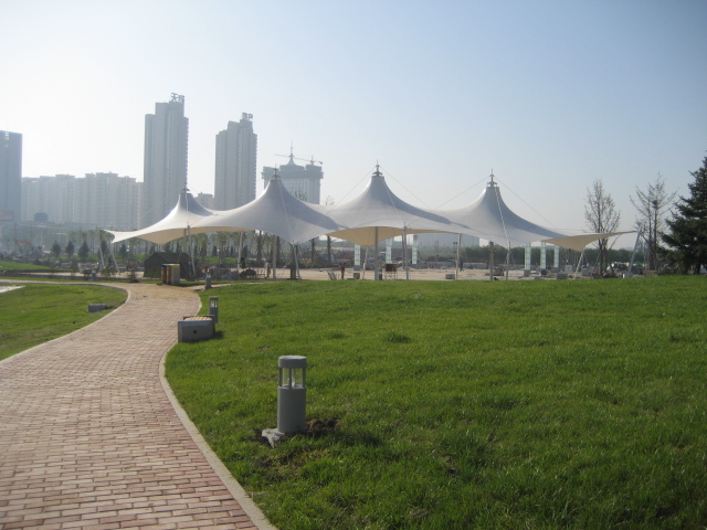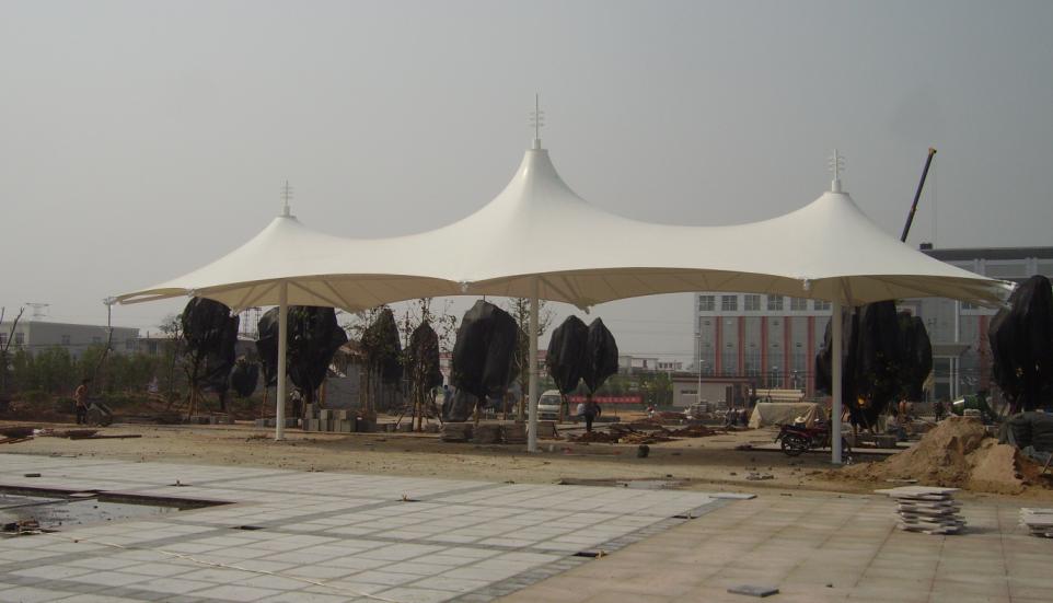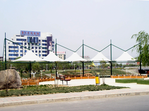 1.张拉膜结构遮阳棚与传统遮阳结构在材质上有所不同