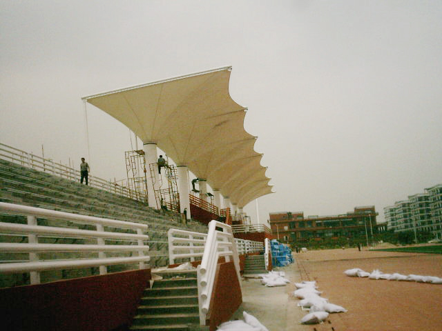 膜结构体育看台采用新型复合材料和新技术进行制造。它不仅外观美观、造型独特,而且质量稳定、结构坚实,防风、防水、防火、防腐、抗震、抗压、隔热、隔音等性能齐全。膜结构体育看台具有很高的适应性,不管是严寒地区还是炎热地区,都能适应各种气候环境需求,同时能够为用户提供更为舒适、清爽的观赛环境。
