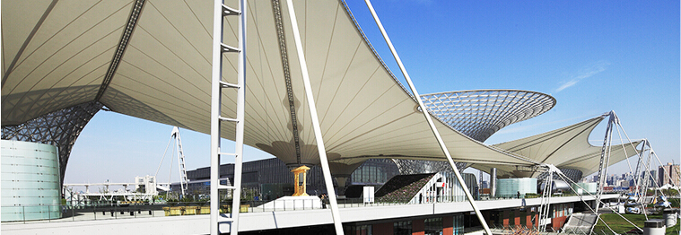 (1)PTFE膜材的特点是强度高,中等强度的PTFE 膜厚度仅0.8mm,但它的拉伸强度已达到钢材的水平;而且弹性模量较低,有利于膜材形成复杂的曲面造型;